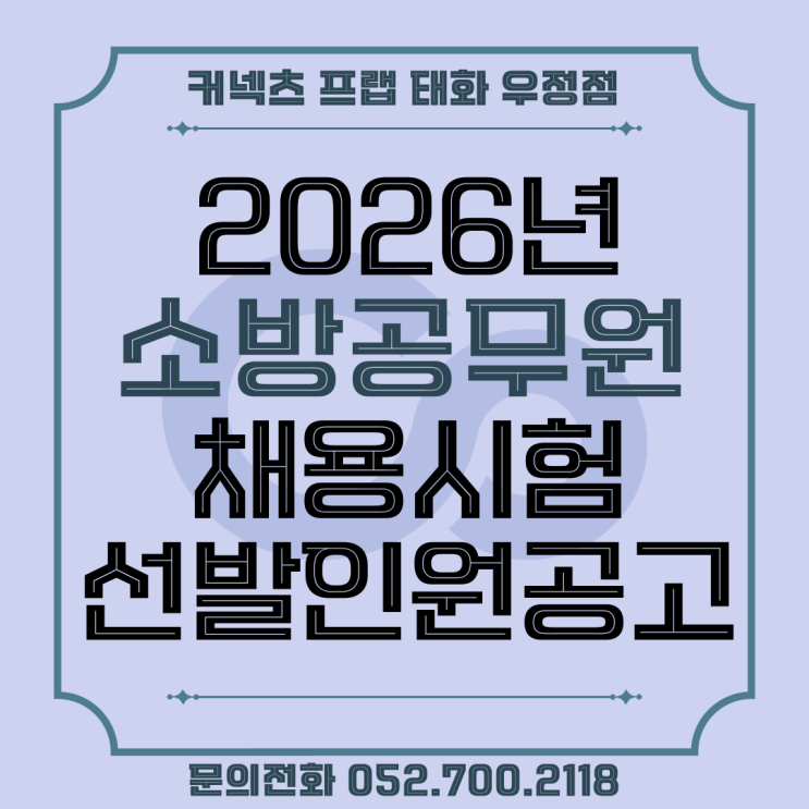 안녕하세요 커넥츠 프랩 태화우정점 입니다. 2026년도 소방공무원 선발인원이 공고 되었습니ㄷㅏ! 총 채용인원 : 2,367명 공채 : 남 1,039명 / 여 137명 경채 : 남 869명 / 여 272명 (양성 50) 올해는 작년 대비 채용인원이 440명 증원되어 조금은 심적 부담을 덜 수 있을것 같습니다. 공채는 남자 226명 / 여자 44명이 증가하였고 경채는 구급 152명 / 일반 118명 증가 하였습니다. 지역마다 차이는 있지만, 전년 대비 채용인원이 늘어난 만큼 수험생분들의 합격 가능성도 조금 더 늘어 났다는 기대감이 듭니다. 다가오는 시험이 어느 덧 2개월 남짓 남았습니다. 남은 시간동안 아낌없이 열정을 불태워 좋은성적 만들어낼 수 있기를 바랍니다. <img src="https://blogthumb.pstatic.net/MjAyNjAxMDdfNzkg/MDAxNzY3NzYzNDI4MjI4.sovGir7rpG2iWgnvQZ7vAxSLIb7iAElmcqJiVxEZfe4g.PX4dNqVm5ehg_kGf-tKtiUQiVbLcYDhzlUXPkFxy3qEg.PNG/%C5%C2%C8%AD%C1%A1-001_%2823%29.png?type=s3" />