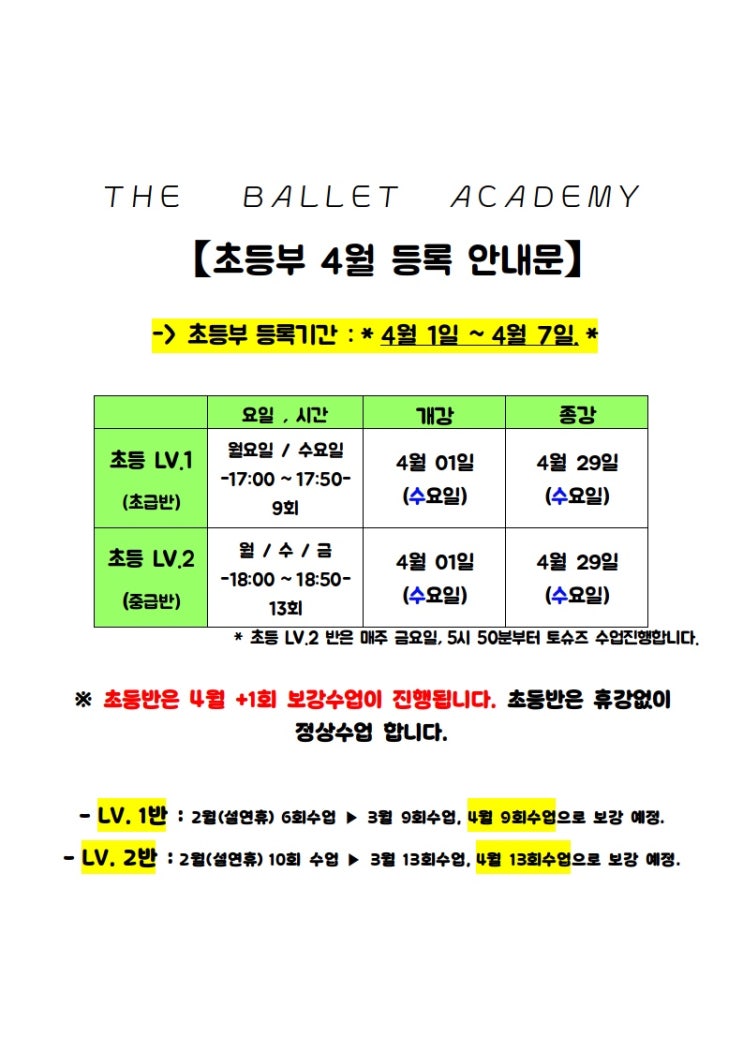 4월 등록기간 안내문