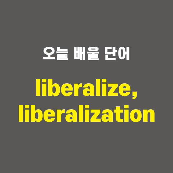 이번에 학습할 단어는 "liberalize, liberalization"이라는 단어인데 이 단어는 "liberal(자유로운,...)"에서 이어져요. "liberal(자유로운,...)"과 관련된 설명은 아래 링크된 글에서 확인할 수 있어요. "liberal(자유로운,...)" 설명 보러 가기 liberalize 뜻 : <규제, 종교, 체제를> 자유롭게 풀다 또는 완화 시키다 (동사) 발음 : [lí 리 bə 버 rəlài 뤌라이 z 즈] liberal + i + [ze 동사] 되도록이면 간섭하지 않고 자유로운(liber) 상태로 만든다[ze]는 의미에서 "자유롭게 풀다" 또는 "완화시키다"라는 뜻이 돼요. 예문 The government decided to liberalize the ....... <img src="https://blogthumb.pstatic.net/MjAyNjAyMTFfMjAx/MDAxNzcwNzgyNTcwODQx.SYE24fY2BPMBd11RmRQzlw3MqgCXkKpqv1oFEz0VvJ4g.EH7oQzieKihFxTnaZhFJG1BAfld74qP8l0PHsIMG6MUg.PNG/liberalize%2C_liberalization.png?type=s3" />