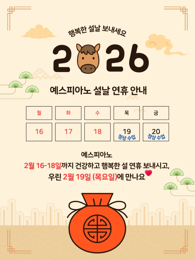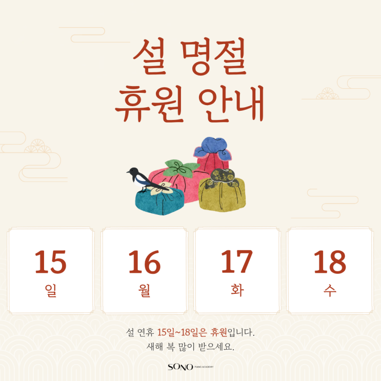 [소노피아노] 설 연휴 휴원 일정 안내 (2/15~18)