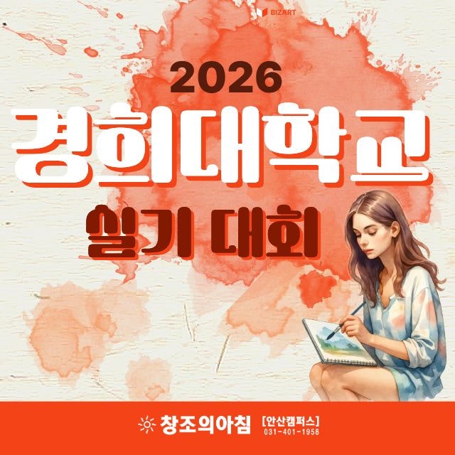 어느덧 실기대회 시즌이 다가오고 있습니다. 부디 열심히 노력한만큼 좋은 결과가 있었으면 합니다. | 주최 경희대학교 예술·디자인대학 | 일시 2026년 5월 2일(토) ~ 5월 3일(일) 오전/오후 각2회(총 4회) [오전] 9:00 ~ 12:00 (3시간) / [오후] 15:00 ~ 18:00 (3시간) 일정 및 회차는 신청자 직접 선택방식 (선착순, 중복지원 가능) 실기 시작 30분 전까지 입실 완료 | 장소 경희대학교 국제캠퍼스 ( 지도 링크 ) | 수상자발표 2026년 6월 초 | 포스터 | 참가자격 전국 고등학교 재학생 및 졸업생 ( 이와 동등 자격 소지자 포함 ) ※ 고등학교 재학생 /고등학교 졸업생 / 고등학교 검정고시 취득예정 / 고등학교 검정고시 취득 | 접수방법 온라....... <img src="https://blogthumb.pstatic.net/MjAyNjAzMjRfMjY2/MDAxNzc0MzM5MTUzMjIy.rRVqTZR22DOkog0ZwJZ6nzX8BCMz_HiPn_YDE29pu6gg.7tLr2wqHMVhNPvTY5Ea5XIm3UMDjWI_F5PGcNxt_oekg.JPEG/%C1%A6%B8%F1%C0%BB_%C0%D4%B7%C2%C7%D8%C1%D6%BC%BC%BF%E4..jpg?type=s3" />