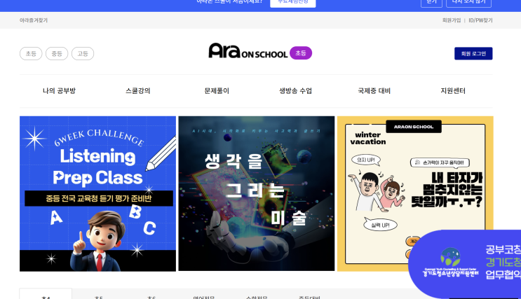 두둥! 온라인 강의를 하게 되었습니닷! 다음 주 부터- 아이들과 하고 있는 수업을 조금 더 많은 친구들에게 닿을 수 있도록, 세상에 내놓게 되었다. 예전부터 조금 더 많은 친구들에게 확장하고 싶었지만, 미술을 어떻게 비대면으로? ㅎㅎ 그래서! - 실기 중심이 아닌 생각 중심. AGI시대까지 10년도 안남았다. 생각하는 교육은 완전 필수!!! 요기 링크로 아라온스쿨 홈페이지에 접속하면, 초등부 페이지. 저기 저 타자수업 저도 수강하고 싶다고요 ㅎㅎㅎㅎ 이건 중등부. 이렇게 메인에 딱 눈에 띄게 보이게 해주셨다. 우와! 매 주 초등부 1클래스, 중등부 1클래스 이렇게 수업한다. 메인페이지 오른쪽 하단 공지사항에도 수업이 이렇게 보인다....... <img src="https://blogthumb.pstatic.net/MjAyNjAxMDlfMTUw/MDAxNzY3OTU4MjUwOTgw.cq-XM3rAQ_iMXZoT3_MogZvKlMcaUAfRnjwLMX1dckwg.u7qSDX8_dqdJfYtbhyt_OeyL-2cmgmIA8s0YbzfihP0g.PNG/image.png?type=s3" />