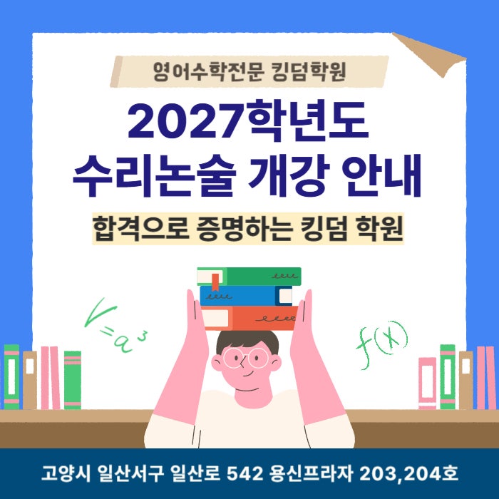 고양시 일산 수리논술 - 2027학년도 수리논술 개강 안내 : 합격으로 증명하는 킹덤 학원