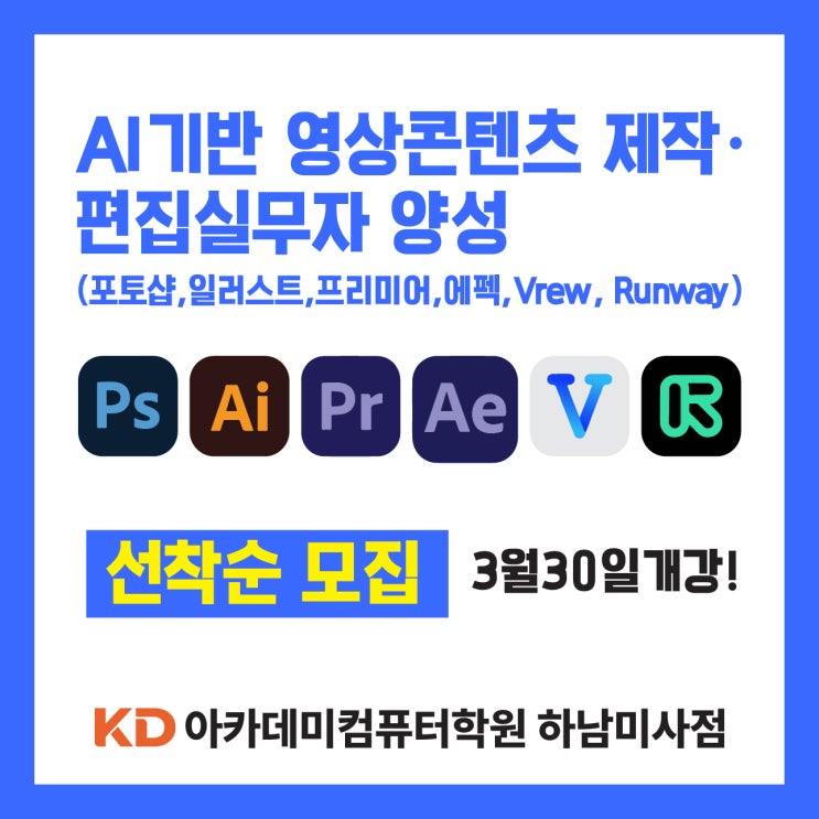 [하남KD컴퓨터학원]강동구·천호 영상편집 배우기, AI영상콘텐츠 실무자 양성
