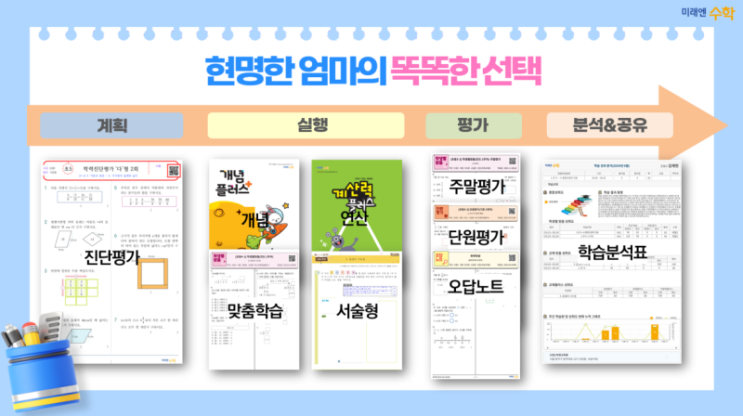하루에 한 시간씩 꾸준히 공부하는데도 어떤 아이는 성적이 오르고, 어떤 아이는 비슷한 자리에서 머무는 경우가 있어요. 이 차이는 ‘공부 시간’보다 공부가 어떤 흐름으로 관리되고 있느냐 에서 생기는 경우가 많습니다. 특히 수학은 더 그래요. 수학은 단원마다 따로 떨어져 있는 과목 이 아니라 개념이 연결되는 구조라서 한 번 흐름이 끊기면 그 다음 단원에서 바로 난이도가 올라간 것처럼 느껴지거든요. 그래서 같은 시간을 공부해도 결과가 달라지는 이유는 결국 하나예요. 계획 없이 풀기만 하는 공부인지? 계획-실행-평가로 이어지는 공부인지? 이 관점에서 보면 미래엔수학은 아이의 학습을 ‘계획-실행-평가’ 흐름으로 관리할 수 있....... <img src="https://blogthumb.pstatic.net/MjAyNjAyMTVfOTcg/MDAxNzcxMTY1OTQ2MDM5.fm-Y9RzPKY1qt50i1KrT2pXkKa3SLkp78F5FStQYSxcg.AE-VpChwk_nWExitxbkb5x3j-4QL6GuVCUAe-NVwANcg.PNG/1771162807017.png?type=s3" />