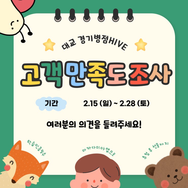 [이벤트] 눈높이 고객만족도 조사에 참여하면 추첨을 통해 선물이~