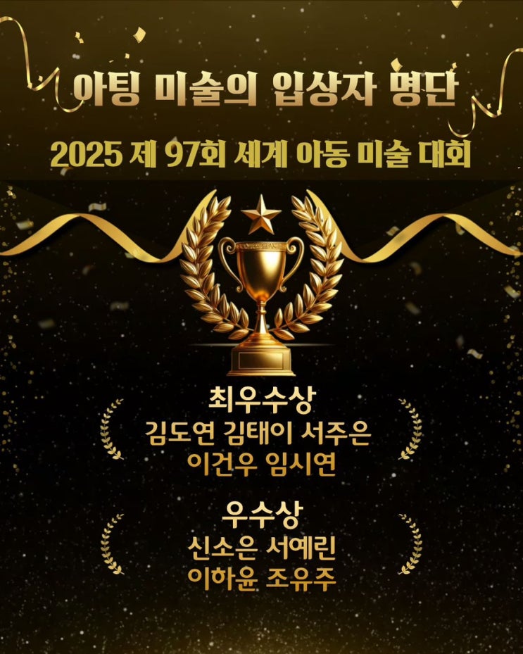 아팅 미술 교습소 2025년 제97회 세계 아동미술대회 입상자 전시회 소개 - 수지 신봉동 성복동 미술학원
