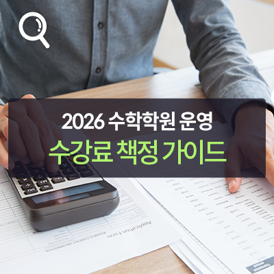 2026년에 수학학원 신규 설립하거나 수강료 인상을 앞두고 있다면 참고하세요. 이번 시간은 2026 수학학원 수강료 책정 가이드에 대해 알아볼게요. [2026 수학학원 창업 전 주변 시세 파악] 수강료 책정의 출발선은 언제나 주변 시세입니다. 일반적 기준으로 도보 10분, 차량 이동 5분 이내 학원들이 실질적인 경쟁 범위가 됩니다. 수강료 책정의 출발선은 언제나 주변 시세입니다. 일반적으로 기준으로 도보 10분, 차량 이동 5분 이내 학원들이 실질적인 경쟁 범위가 됩니다. 네이버 블로그, 홈페이지를 활용해 미리 조사할 수 있지만 간혹 홈페이지 내에 적힌 금액이 학부모가 실제로 결제하는 금액과 차이가 나는 경우가 있습니다. 가장 정확....... <img src="https://blogthumb.pstatic.net/MjAyNjAxMDZfNjgg/MDAxNzY3NjgzODA3MDk0.zfKvAGtM2F-Civ14-de2u6T37BH8JHqSdTa7bkr5h6Mg.bb-ukIyUmVSUoiPE7T9m94x2BKUmKkv_Rhdc7ILSjOMg.PNG/%BD%E6%B3%D7%C0%CF%C0%CC%B9%CC%C1%F6400X400_2024.png?type=s3" />