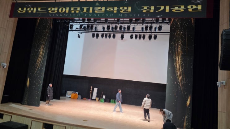 운정영어뮤지컬 전문학원 키즈뮤지컬 싱위드의 첫 정기공연의 리허설 현장을 공개합니다! 이번 제1회 싱위드영어뮤지컬 정기공연은 문산에 위치한 문산행복센터 대공연장에서 진행되었어요~ 429석으로 굉장히 큰 무대였는데요!! 그날의 추억속으로 함께 가보실까요~? ㆍ ㆍ ㆍ 설렘반 긴장반으로 스텝들은 아침부터 분주히 오후에 오는 배우들을 맞이 할 준비를 합니다. 준비된 현수막들을 걸고 대도구와 소품들을 옮기며 자리 체크!✔️ 조명과 음악 체크!✔️ 로비에 포스터를 붙이고 캐스팅보드 셋팅까지!! 우리 배우들은 점심을 먹고 출근했어요~!! 현장 안전교육을 위해 객석에서 대기중입니다. 본격 테크 리허설 시작!! 극장에 오래 있으면....... <img src="https://blogthumb.pstatic.net/MjAyNjAyMTFfMTE3/MDAxNzcwODE3NzU0MTMy.70VTSgqKSxd3kVr7IaJ-oDCdqoINM6EwqNtrqW-Jy1Mg.LlR6KqUguMN2n6fzIVaQ5DfU0xGKHfrzR9bj5DFTJKAg.JPEG/900%A3%DF20260124%A3%DF111048.jpg?type=s3" />