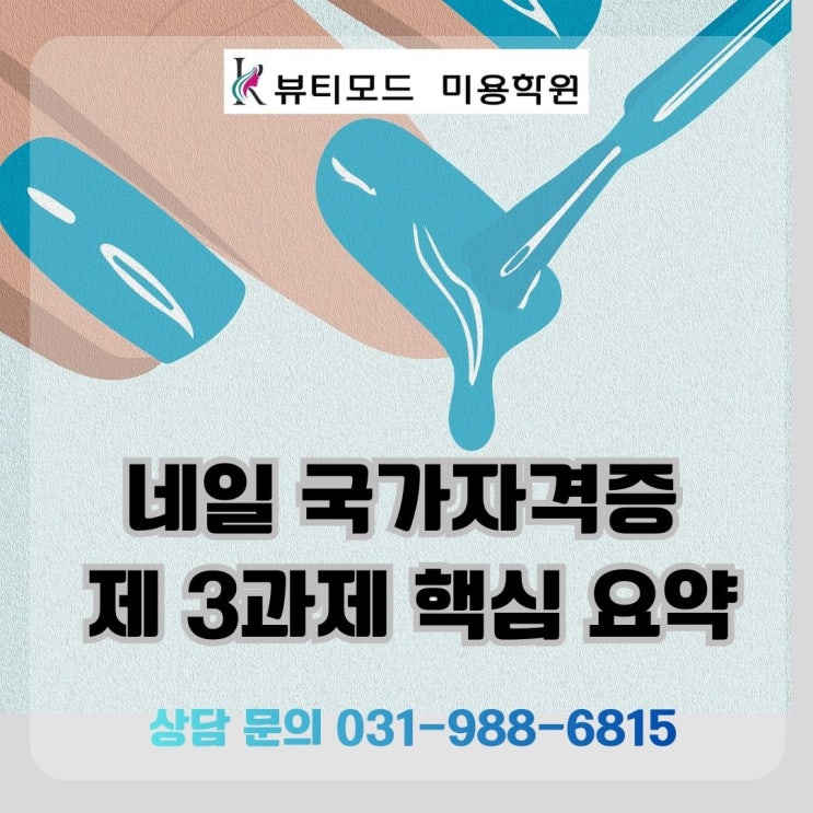 << 네일 국가자격증 제 3과제 4과목 >> 제 3과제는 인조네일 과제로, 네일리스트로서의 기본 구조 이해도와 도구 컨트롤 능력을 평가합니다. K뷰티모드미용학원 김포구래점에서는 제 3과제를 “손으로 버티는 과제”가 아니라 “기준으로 완성하는 과제”로 가르치고 있어요. 힘이 아니라, 순서가 답이거든요. 제 3과제 구성 한눈에 보기 디자인 과제가 아니라 구조와 완성도 중심 평가라는 점이 핵심입니다. 학생부 · 국비지원 모두 가능해요 네일은 꿈으로 시작해 직업으로 완성되는 기술이에요. 그래서 수강 대상도 넓어야죠. 학생부 수강 가능 재직자 실업자 취업준비생 내일배....... <img src="https://blogthumb.pstatic.net/MjAyNjAyMDVfMjM5/MDAxNzcwMjYzMDgwMDEw.9hsya8MgjSKqbVcz8crjwQd_d1x4Z8vbyvacaTHtHDcg.NQjgNiHmJmqL754F-o51rCP4f7bD88XIcXWrjULgqpIg.JPEG/%B3%D7%C0%CF%B1%B9%B0%A1%C0%DA%B0%DD%C1%F5%C1%A63%B0%FA%C1%A6%BD%E6%B3%D7%C0%CF.jpg?type=s3" />