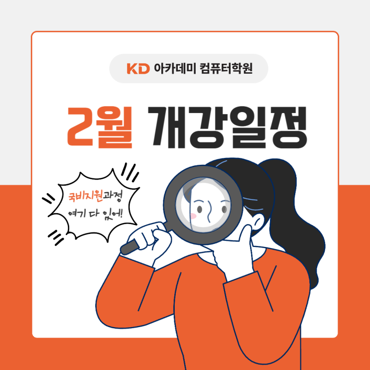 안녕하세요~! 김포·일산·계양구과 가까운 김포시 장기동 국비지원 컴퓨터학원 KD아카데미 김포캠퍼스입니다. https://blog.naver.com/kdacgp/223953541181 개강일정 확인 후, 수강희망한다면 학원으로 방문일정 예약해주세요 :) ⓐ 방문 원서작성 기준, 자리배정됩니다. ⓑ 인기 많은 수업은 자리가 빨리 마감될 수 있습니다. ⓒ★당일등록 불가★하니, 일정확인 후 미리 연락 바랍니다! 국민지원취업제도 이용이 가능하고 내일배움카드를 이용해 부담없는 금액으로 수강하실 수 있습니다. 26년 04월 04일(토) 시험 대비반 26년 06월 06일(토) 시험 대비반 정규과정 커리큘럼 한번에 보기! Click ! (이미지를 클릭시 세부 교육과정....... <img src="https://blogthumb.pstatic.net/MjAyNjAyMTNfMTc2/MDAxNzcwOTcxNTcyMjAx.gPbxMm4we0GjAdiCQOdKLqRyczSkFgHqOXU9FS4sndQg.fbL99sn3mQhT8CQOaMCohwus-XIj9flW-yyDVPZnESQg.PNG/%B0%B3%B0%AD%BC%D2%BD%C4_%BD%E6%B3%D7%C0%CF-001.png?type=s3" />