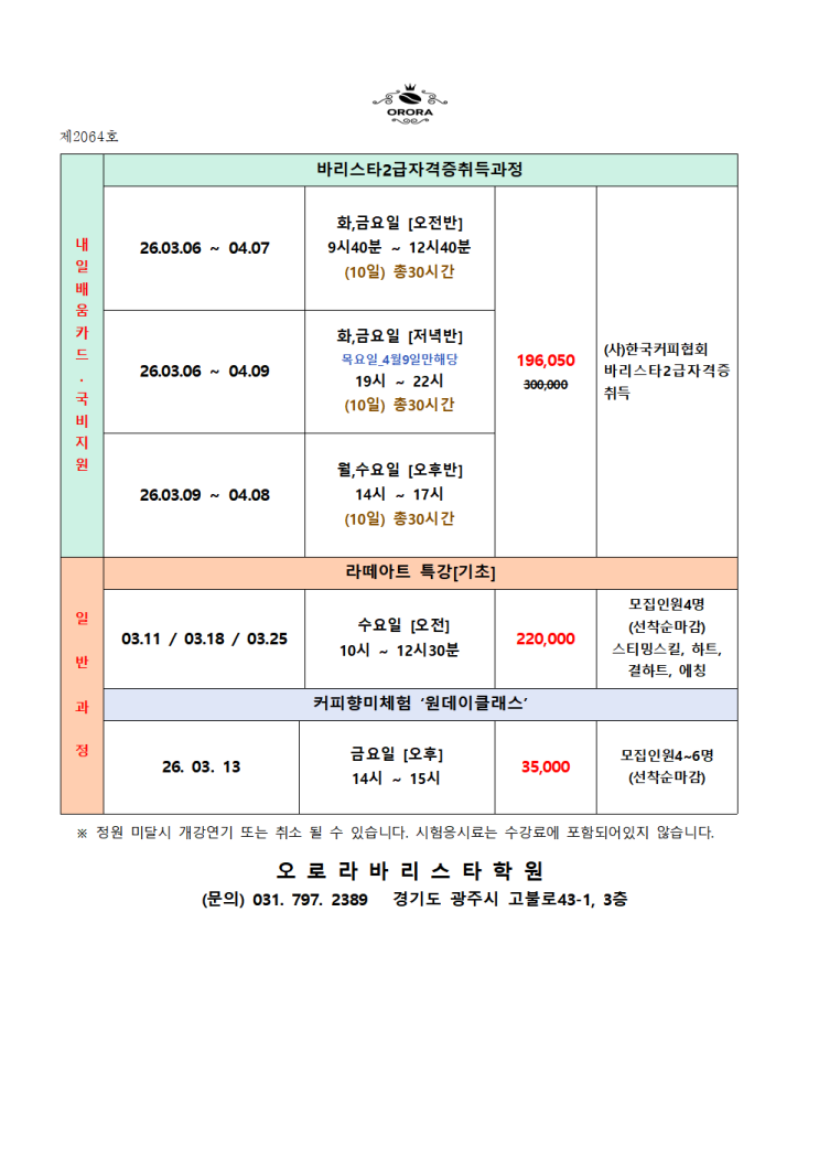 #경기광주바리스타학원#경기도 광주#오로라바리스타학원#태전동바리스타#바리스타학원#바리스타자격증#국제sca#라떼아트#경기광주역#중대물빛공원#바리스타1급#원데이클래스#커피향미교육#평생교육바처#삼동역#양벌동 <img src="https://blogthumb.pstatic.net/MjAyNjAyMjNfNDkg/MDAxNzcxODU2ODI2Mjk0._FjufjMgiChjdHeKPbF33KQucULTWiAd5-iIY_61Wdsg.TXktG3jf3uo5ekfRdyDFDkUp67XW5cxKsjtK5nrNj2Ag.PNG/%B0%B3%B0%AD%C0%CF%C1%A4%C7%A5_%B0%F8%C1%F6%BF%EB001.png?type=s3" />