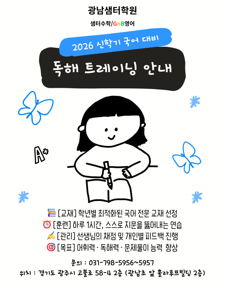 [광남샘터학원] 2026 신학기 대비 국어 독해 트레이닝 신규 개강