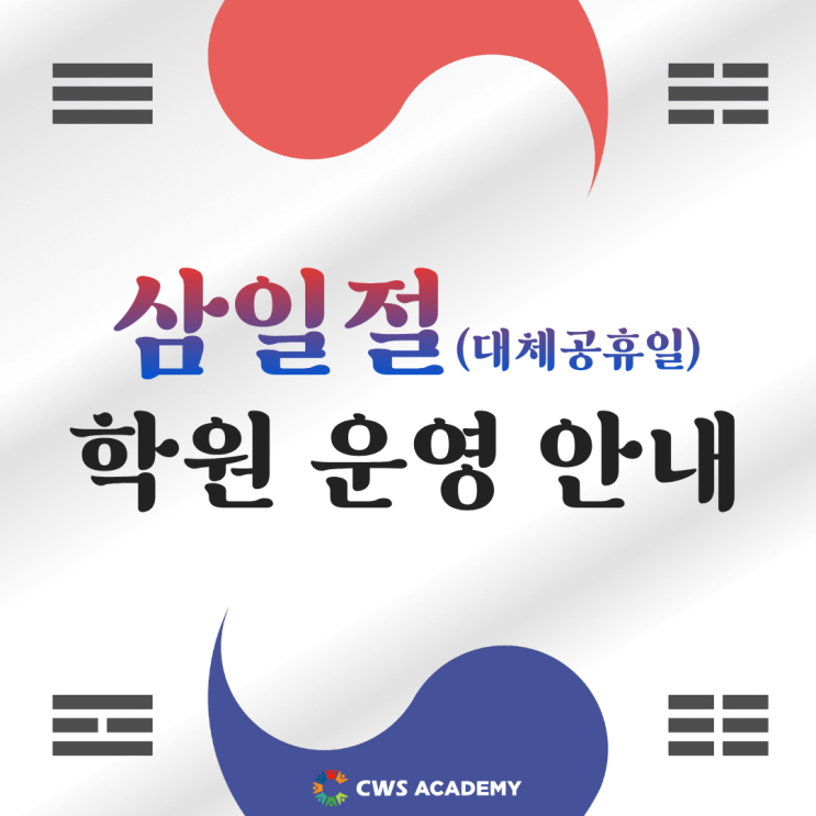 ❤️채원석학원❤️ 삼일절 및 대체공휴일 학원 운영 안내드립니다.