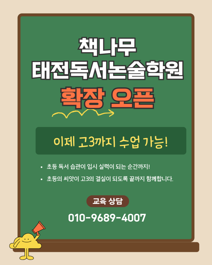 [책나무 태전 독서논술학원] 학원 확장! 이제 고3까지 수업 가능합니다!