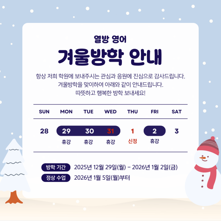 겨울방학은 다음 학기를 준비하는 가장 좋은시기