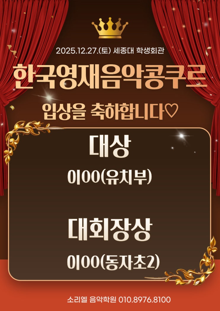 2025. 12/27(토) 한국영재음악 콩쿠르 입상