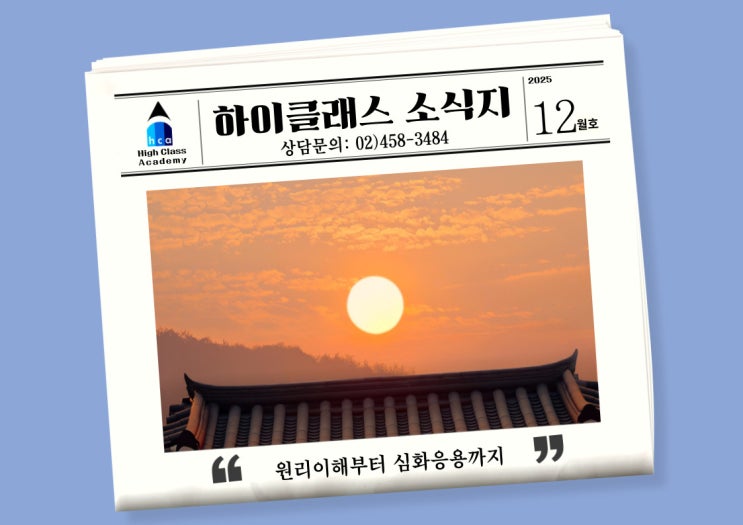 안녕하세요~ 하이클래스 12월 소식지 전해드려요~ 벌써 2025년의 마지막 달입니다. 올 한 해 동안 학생들이 원하는 만큼의 성장을 이루었을까 생각이 들곤 합니다. 올 한해도 잘 마무리하고 새해에는 또 다시 새로운 목표를 향해 가르치도록 하겠습니다. 상담신청을 원하시는 분은 아래 링크를 눌러주세요 ^^ https://naver.me/xaoEBBgt #광진구수학학원 #광진구영어학원 #자양동영수학원 #성자초 #신자초 #자양초 #광양중 #구의중 #건대부중 #선화예중 #광진중 #자양중 #광양고 #건대부고 #자양고 하이클래스학원 <img src="https://blogthumb.pstatic.net/MjAyNTEyMzBfMjUx/MDAxNzY3MDg5MTUzMDA1.LtwNHnIOvJQ0WHDyJttxE5HdAmsTfoFBaxJhksKlbcog.FMR-ZaoxFGiZVCOXcTtOqY4LwTOzXeLZpqMw9QUOc2Ug.JPEG/%BA%ED%B7%CE%B1%D7-%BF%F9%B0%A3%C6%F2%B0%A1-%BC%B6%B3%D7%C0%CF-018.jpg?type=s3" />