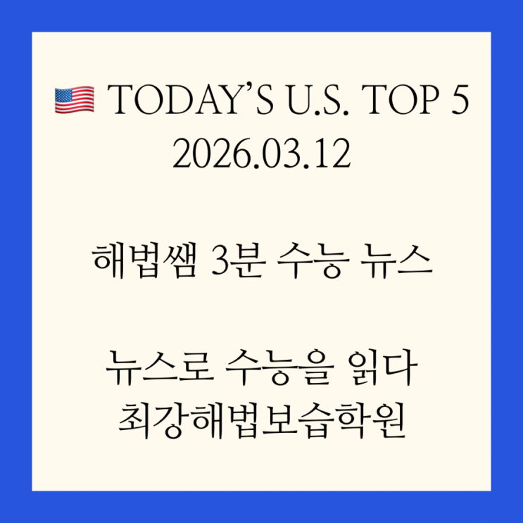 2026.03.12 미국 5대 뉴스 뉴스로 배우는 수능 영어 독해 | 해법쌤 3분 수능 뉴스
