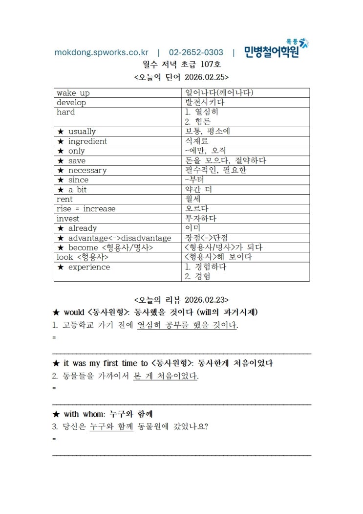 2026.02.25. 월수 저녁 초급 107호 (19:30-21:30)
