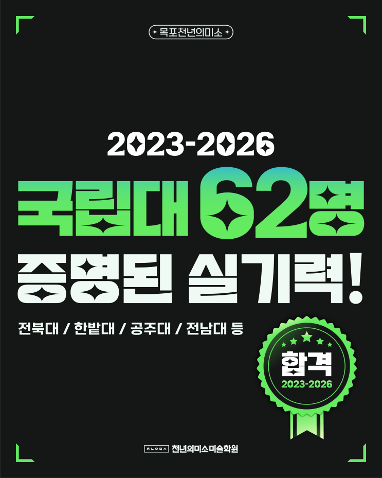 2023–2026 국립대 총 62명 합격! 숫자로 증명된 결과[목포미술학원_남악미술학원_남악입시미술학원_목포입시미술학원]