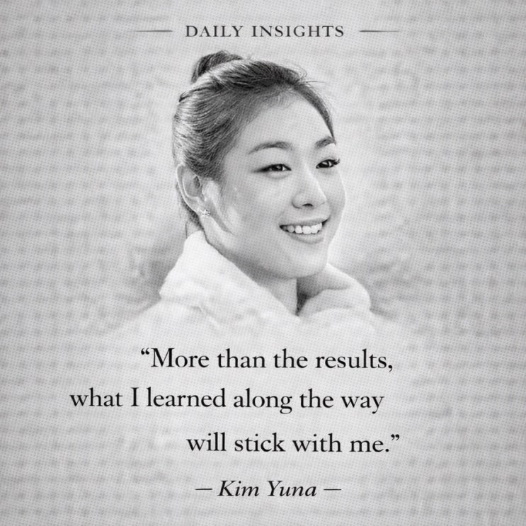 “More than the results, what I learned along the way will stick with me.” — Kim Yuna — 결과보다도, 그 과정에서 내가 배운 것들이 오래도록 나에게 남을 것이다. 많은 사람들은 결과만을 바라보지만, 진짜 성장은 과정 속에서 만들어진다. 눈에 보이는 점수나 성과는 순간이지만, 그 과정에서 얻은 경험과 배움은 평생 남는다. 그래서 공부도, 인생도 결과보다 ‘어떻게 걸어왔는가’가 더 중요하다. 간단 문법 포인트 • what I learned = ‘내가 배운 것’이라는 명사절 (문장의 주어 역할) • along the way = 그 과정에서 (부사 표현) • stick with me = 오래 남다, 계속 기억에 남다 • More than the results &#....... <img src="https://blogthumb.pstatic.net/MjAyNjAyMjJfMTgy/MDAxNzcxNzU0NjA2NDc3.U2v6yr36_3EQ9xDbZczsH9iTOHJlaotHSmSyPM_HknIg.HqBj-u31JlvIViWRd-Q3pQfxW4W2qk3koeHG3KqQyUYg.JPEG/10E11E21%A3%AD7C93%A3%AD4B9A%A3%ADB1CD%A3%ADE09607E70A77.jpg?type=s3" />