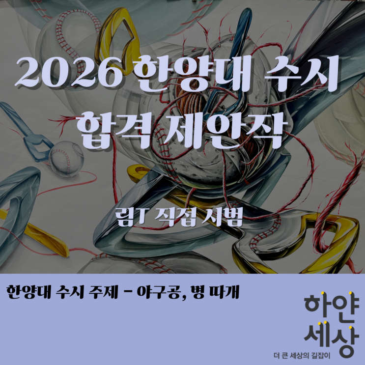 :: 기출을 그대로 쓰지 않습니다 :: 2026 한양대 수시 주제 분석 | 야구공·병따개 연구작 공개 안녕하세요. 기출을 단순히 ‘따라 그리는 수업’이 아닌, 출제 의도를 분석하고 재구성하는 수업을 진행하는 하얀세상 미술학원입니다. 이번에는 2026학년도 한양대학교 수시 기초디자인 주제였던 ‘야구공, 병따개’를 바탕으로 림T가 직접 제안하고 연구한 수업 작업을 소개해드리려 합니다. ✔️ 왜 기출을 그대로 그리지 않을까요? 입시미술에서 기출 문제를 그대로 반복해서 그리는 연습은 단기적인 안정감은 줄 수 있지만, 실제 시험장에서의 대응력을 키우는 데는 한계가 있습니다. 저희 학원에서는 기출을 이렇게 다룹니다. 어떤 소재 조합....... <img src="https://blogthumb.pstatic.net/MjAyNjAxMjlfMTIz/MDAxNzY5Njc0MDEyODIw.y_YevqeWyKiUjM-Xw04-1VYPU_w0pCwpOGgnb02tCLgg.a_8hmSC_jWn4yTC0t5U7byUcpR4vRXI9eP7UuY_exwQg.PNG/%C1%A6%B8%F1%C0%BB-%C0%D4%B7%C2%C7%D8%C1%D6%BC%BC%BF%E4_-001.png?type=s3" />