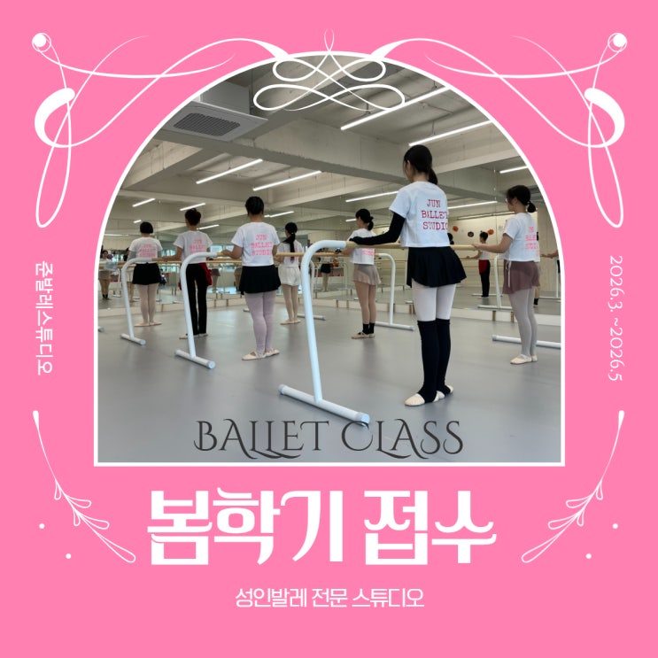 안녕하세요!!! 준원장입니다. 봄학기 신규모집합니다!! 안녕하세요!!! 이제 봄이 다가오고 있습니다. 이번에 신규 인원 모집이 많지는 않지만 2026년 봄학기 접수가 시작되었습니다. 3월, 4월에 이어서 신규모집을 하오니 학원일정을 참고해주시고 개강 전에 신청해주시면 됩니다. ^^ 준발레수업은 주2회반 >8회 주3회반 > 12회 주4회반 > 16회 매달 수업 횟수가 동일하게 짜여져 있고 한달에 두번까지 다른 요일, 시간대로 보강이 가능합니다. 수업일정을 확인하시고 수강신청을 해주시면 됩니다. 우리 메인사진은 화목반 스트레칭반 언니들 단체복 입고 샷!! 5월은 와이즈발레단 공연이 있네요. 우리 제자들과 이웃친구들 경남문화예....... <img src="https://blogthumb.pstatic.net/MjAyNjAyMjFfMTE5/MDAxNzcxNjgyNzEyMjY2.qF3l1AIrmvkljRgpTBnsA2YKAJu5oISVlIVW4UCMJkUg.37IylS_08szgM4qKBaXvSk-dxTl6rAO1ykFOynryKuwg.JPEG/%C1%D8%B9%DF%B7%B9%BD%BA%C6%A9%B5%F0%BF%C0_%BA%BD%C7%D0%B1%E2_%2819%29.jpg?type=s3" />