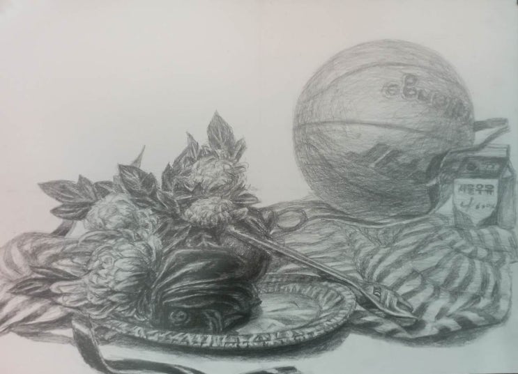 강남 대치동 개포동 일원동 수서 미술학원 홍익화실 예고 입시-수행평가반 이진하 의 정물 소묘 그리기 (3시간30시험)