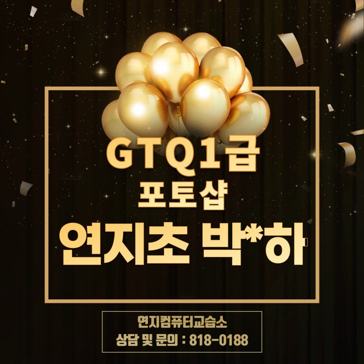 <신고 제 11643 호> 연지컴퓨터교습소의 자랑스러운 합격생을 소개합니다 안녕하세요, 연지컴퓨터교습소입니다 오늘은 너무 기쁜 소식을 전해드립니다! GTQ 1급 합격 소식 ️ 연지컴퓨터교습소의 합격비결은? ✅ 맞춤형 커리큘럼 수준에 맞춘 수업 구성으로 비전공자도 무리 없이 도전 가능! ✅ 기출문제 완전 정복 최근 기출 중심의 실전 대비 학습으로 시험 적응력 향상 ✅ 소수정예 수업 질문은 언제든지 OK! 꼼꼼한 피드백으로 이해도 UP ✅ 실기까지 완벽 대비 이론 + 실습을 병행하며 실기시험도 자신감 있게 준비! 자격증, 왜 필요할까요? 공무원 및 공기업 가산점 대학 및 특성화고 입....... <img src="https://blogthumb.pstatic.net/MjAyNjAyMjVfMzIg/MDAxNzcxOTk5NTU4Nzg2.5zxhuVBpfuXCNpZw9tksZN_u68NQvmZLnNqEzxDsTW8g.GyeKkDKlEs5AZN9AyBFG0hSW4318sZg6QqImxRqHFgMg.JPEG/%C1%A6%B8%F1%C0%BB-%C0%D4%B7%C2%C7%D8%C1%D6%BC%BC%BF%E4_-001_%281%29.jpg?type=s3" />