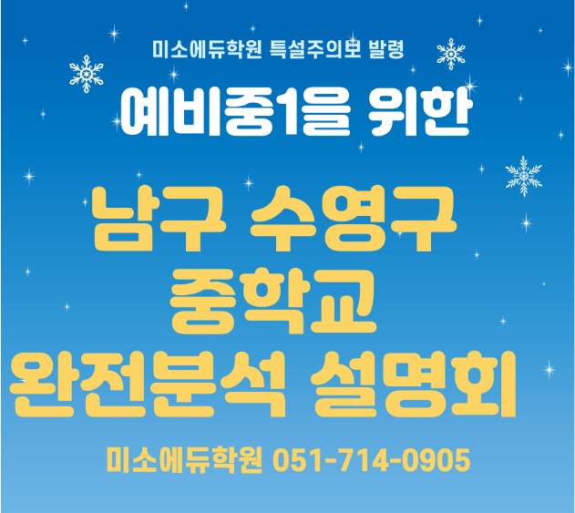 대연동 중등학원 미소에듀, 예비중1을 위한 남구 수영구 중학교 완전 분석 설명회