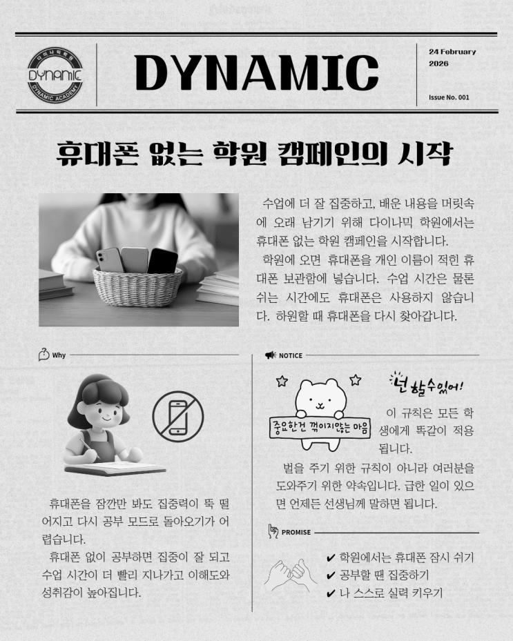 [다이나믹학원] 휴대폰 없는 학원 캠페인의 시작✨