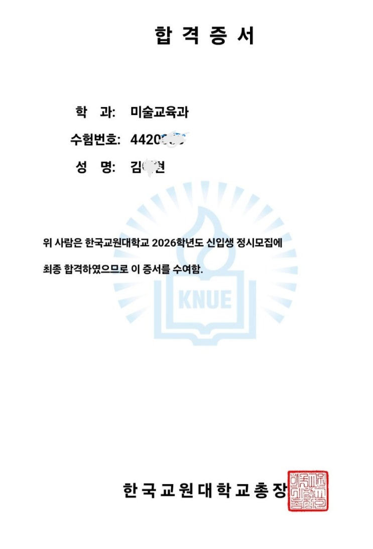 해운대 센텀 입시미술학원 - 센텀 다다미술학원 - 2026학년 한국교원대학교 최단기간준비 합격! - 미술교육과 합격!