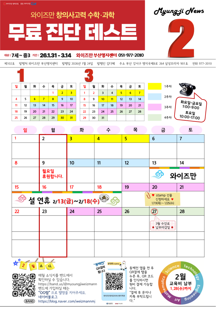 Hi~there~ 2월은 방학 동안 쌓아온 영어 실력을 점검하고, 새 학기를 위한 기초를 단단히 다지는 시기입니다. 저희 학원에서는 아이 한 명 한 명의 속도에 맞춰 영어에 대한 자신감을 키워주고 있습니다. 새학기 중등 영어, 문법부터 제대로 잡아야 합니다 중학생이 되면서 영어가 갑자기 어려워졌다는 말, 정말 많이 들어요. 단어는 아는데 문장이 안 만들어지고, 문법을 배웠는데 시험 점수로 연결이 안 되는 경우가 많거든요. 새학기 영어는 ‘감’으로 하면 절대 안 됩니다. 문법을 구조부터 제대로 잡아야 내신·서술형·수행평가까지 이어져요. 중등 문법 특화 수업, 이렇게 다릅니다 1. 중등 필수 문법 개념 정리 (기초부터 탄탄하게) .......