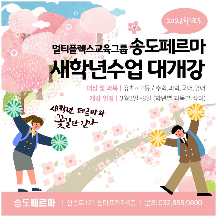 송도종합학원이 유치부터 고등까지 2026학년도 새학년 대비 전과목 수업개강소식을 안내합니다.