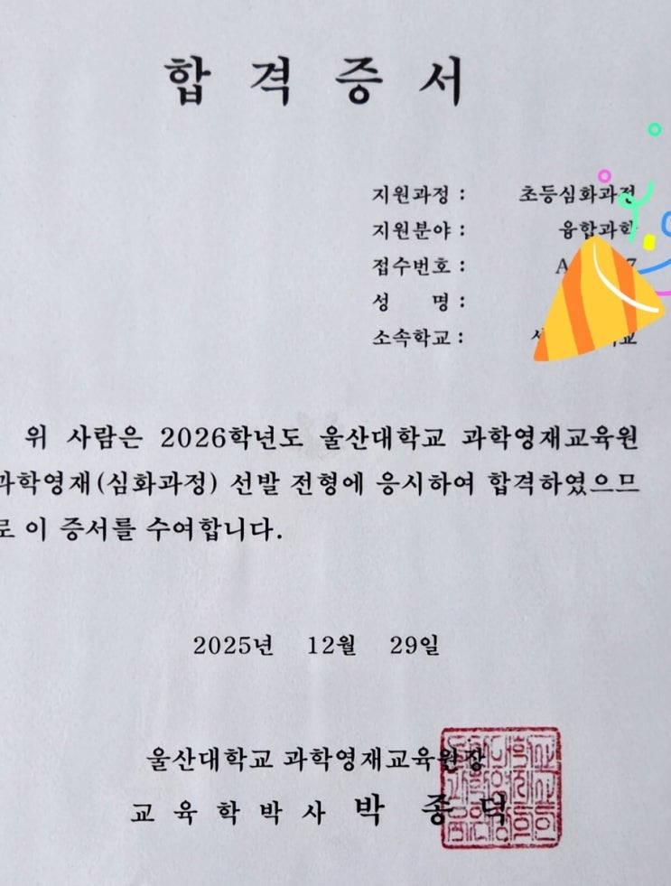 울대 영재교육원 합격