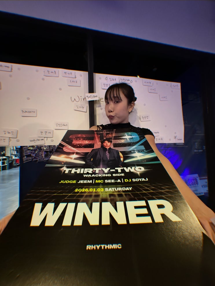 카이댄스 수상 소식 2026 THIRTY-TWO ️ 2026년 1월 3일 (토) 창원에서 열린 THIRTY-TWO 왁킹 사이드 배틀에서 보네 선생님께서 우승을 차지하였습니다! 새해부터 좋은 소식을 만드신 보네쌤께 많은 관심과 축하 부탁드립니다 WINNER : @bone.kr [입시/전문, 취미/기초, 오디션, 개인레슨] 문의 및 상담✨ 카카오톡 @카이댄스뮤직 052-246-8359☎️ #울산댄스학원 #댄스학원 #카이댄스학원 #울산연습실 #댄스연습실 #브레이킹 #직장인취미 #댄스 #댄스초보 #전문반 #입시반 #공연 #입시전문반 #댄스전문 #댄스취미 #입시전문반 #전문반 #입시반 #대학교 <img src="https://blogthumb.pstatic.net/MjAyNjAxMDlfMjQ0/MDAxNzY3OTMxNTczMzMw.wMd0jQ2POD9ncHcGRVeP05tGGh0MzK0ZmD8w9l0bCXIg.d_4rYh_MPKkQJQd3Z_Zb2rY0UqYmzyXoc3cKD6Dl88wg.JPEG/DF279D8E-6982-485D-BD67-E6F649195E4A.JPG?type=s3" />