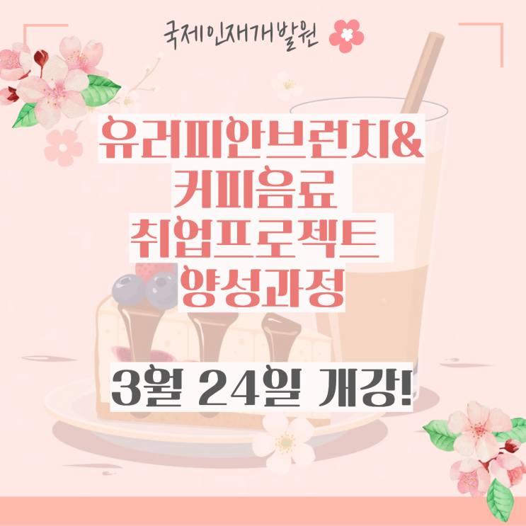 안녕하세요! 따스한 봄 햇살처럼 포근한 기운을 가득 담아, 오늘도 우리 국제인재개발원의 블로그를 방문해 주신 소중한 여러분을 진심으로 환영합니다! ✨ 3월, 무언가 새로 시작하기에 더없이 완벽한 달이죠? 싱그러운 봄바람과 함께 여러분의 커리어에도 기분 좋은 변화를 일으켜 줄 특별한 프로젝트를 준비했습니다. 이 과정, 무엇을 배우나요? 단순한 조리 수업을 넘어, 카페 창업이나 외식업계 취업을 꿈꾸는 분들을 위한 올인원 패키지로 구성되었습니다. [ 양식조리기능사 마스터 (브런치의 기본) ] 기초 탄탄 : 칼 잡는 법, 식재료별 손질법 등 조리의 기본기를 완벽하게 다집니다. 시험 완벽 대비 : 홀랜다이즈 소스, 오믈렛, 스....... <img src="https://blogthumb.pstatic.net/MjAyNjAyMjBfMjUx/MDAxNzcxNTY0MjUxNTc4.rEXN4dNIDrYmk54pnoBmtc65P_VJ5oFPW-9pIq0mrv8g.RtCEZweu_5h5yYEqWuORo6xKY6p0vBGoTCaTCruPzqYg.PNG/1.png?type=s3" />