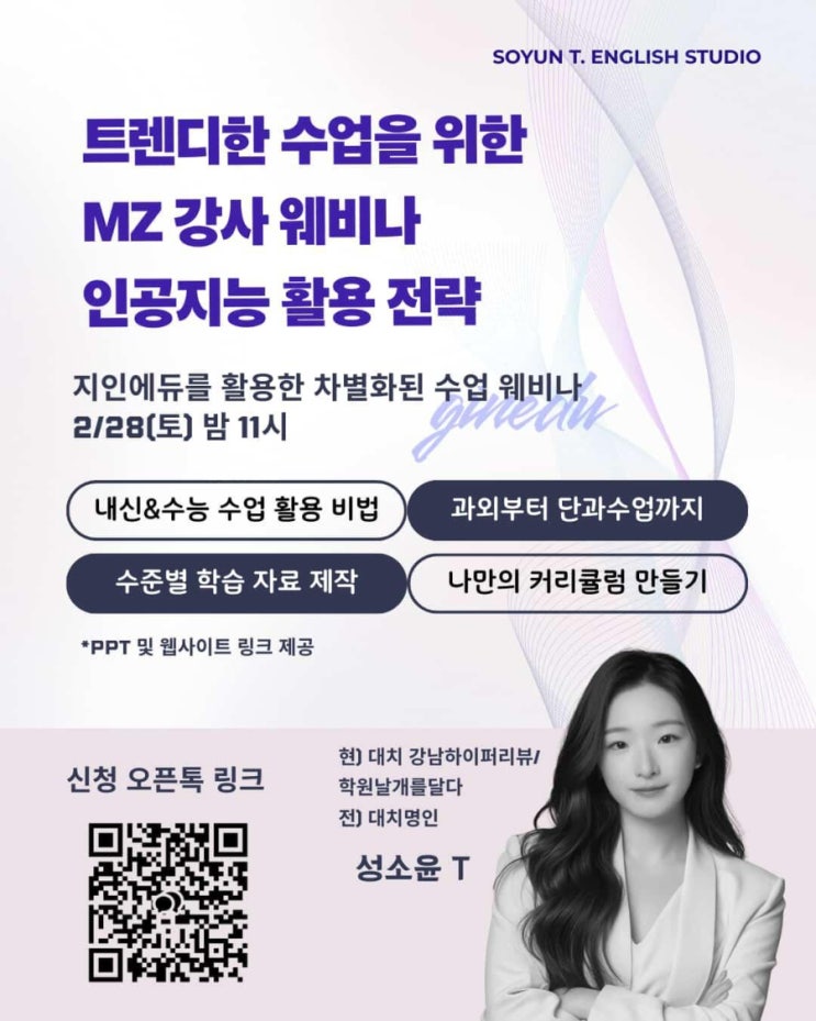 밤티나는 자료 피하고 싶은 강사님들 필수 수강! 우리학원만의 감도 있는 자체 제작 자료로 과외 • 단과 • 내신 • 수능 수업까지 모두 적용 가능한 올인원 제작 시스템 같은 프로그램을 사용해도 100% 활용하는 사람은 많지 않습니다. 함께 성장하는 선생님들, 이번에도 한 단계 업그레이드 해볼까요?❤️ 링크를 선택하면 카카오톡이 실행됩니다. 소윤T 지인에듀 웨비나 https://open.kakao.com/o/sKhbr0hi 지인에듀에 대한 자세한 내용은 아래 링크를 참고해주세요! <img src="https://blogthumb.pstatic.net/MjAyNjAyMjVfMTM5/MDAxNzcyMDEwODA0OTg0.3ZwMxUrKQ8zPmujJwpeSYLo2u6Ke4zbsqqrayH2jL2gg.-_qvW2fgaSnPjtARuuG_2hw_sn2e1kJIHWFLZrKyA3Ig.JPEG/900%A3%DFIMG%A3%DF20260225%A3%DF180903%A3%DF304.jpg?type=s3" />