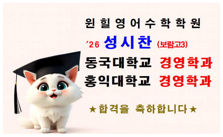 성정이 올곧고 신의있는 성시찬 학생의 합격 소식입니다. 이제 부모님과 저희의 품을 벗어나 넓은 세상에서 마음껏 뜻을 펼칠 수 있기를 진심으로 바랍니다. 졸업생들과 학부모님의 광고에 대한 개인 정보 활용을 서면으로 동의받은 후에 학생들의 이름과 합격 대학 게시합니다. <img src="https://blogthumb.pstatic.net/MjAyNTEyMjNfODEg/MDAxNzY2NDc2NDEzOTUy.M6BCVA6PNPii-IEJl5tnrpea_tzEtaeOcDlbwEoaJKsg.oQ-nWWjgoqpA5WYD8W5vsGu9WeXEgZOIubj99d0tjWEg.PNG/%BC%BA%BD%C3%C2%F9.png?type=s3" />