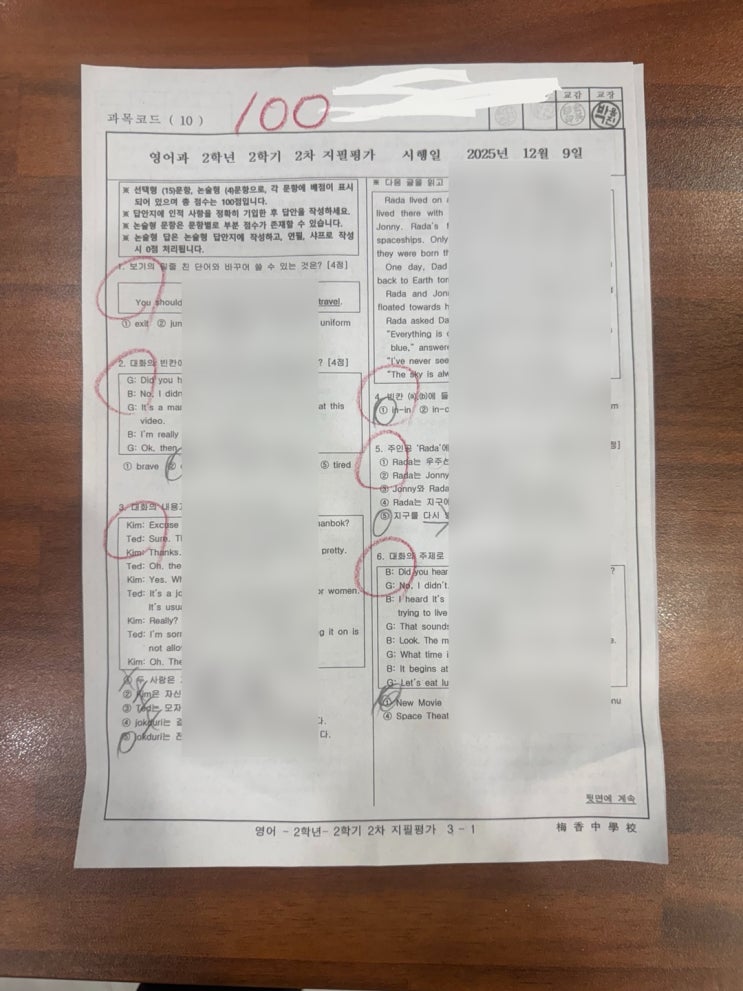 지난 주 중학생들의 영어시험이 있었습니다. 수원중,세류중,권선중,매향중,고색중 학생들이 영어 시험에서 100점을 받아왔습니다. 매교 고려삼성 영어학원 중학생들이 시험을 잘 본 비결은? 평소 어려운 공부를 하고 시험을 쉽게 보자는게 저희 학원의 원칙입니다. 현재 고려삼성 영어학원의 중1학생들은 모두 고등단어를 외우고 있는데, 가끔 학생들이 이렇게 어려운 공부르 하는게 맞냐며 투덜댈 때가 있습니다. 그럴때마다 제가 학생들에게 하는 이야기가 있습니다. "지금이 우리 인생에서 가장 나이가 어린 날이며 지금 공부를 열심히 해야 두뇌가 발달한다" 저희 학원의 중1학생들은 대부분 초등학교 때 부터 고려삼성 영어학원에....... <img src="https://blogthumb.pstatic.net/MjAyNTEyMThfMjU2/MDAxNzY2MDQ1MTk1MDkw.iYC_Q8z1s1PUAtZVCkQ0-xs_WWcBMbopn05rWj3L8NIg.hB6eiry0U6_72eiGohXOEiCmrmzQuevaqMR1qnWLddQg.JPEG/KakaoTalk_20251218_143245249.jpg?type=s3" />