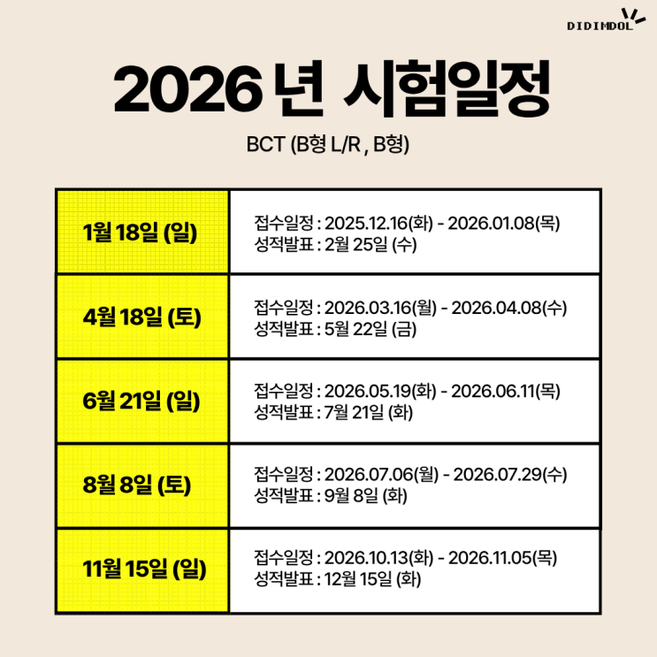 안녕하세요 ! 디딤돌 중국어입니다. 2026년도 BCT / BCT - Speaking 시험일정 공유드립니다 :) 시험일정은 목표하시는 일정에 맞추어 공식 홈페이지에서 다시 한 번 확인해주세요 ^^ 열심히 준비하신 모든 학생분들의 좋은 결과를 응원합니다 :) 2026년에도 디딤돌에서 함께하세요 ! ※ 문의 방법 : Blog : blog.naver.com/kim10125 Instagram : instagram.com/didimdol_academy 당근마켓 : (영통) 디딤돌 중국어 교습소 [◁] 카카오채널 : 디딤돌중국어 [] ☎ 0507. 1468 . 8869 <img src="https://blogthumb.pstatic.net/MjAyNTEyMTVfMjU5/MDAxNzY1ODA4Nzk5MTky.RENVl9r3aWlwJnPr7EeRoIEmNRvqqB5KGs-MiCtSi_8g.RDC2FBETHOwAMHbzYkpRtA4KqALdjp34hvasYqSnL6Eg.PNG/1.png?type=s3" />