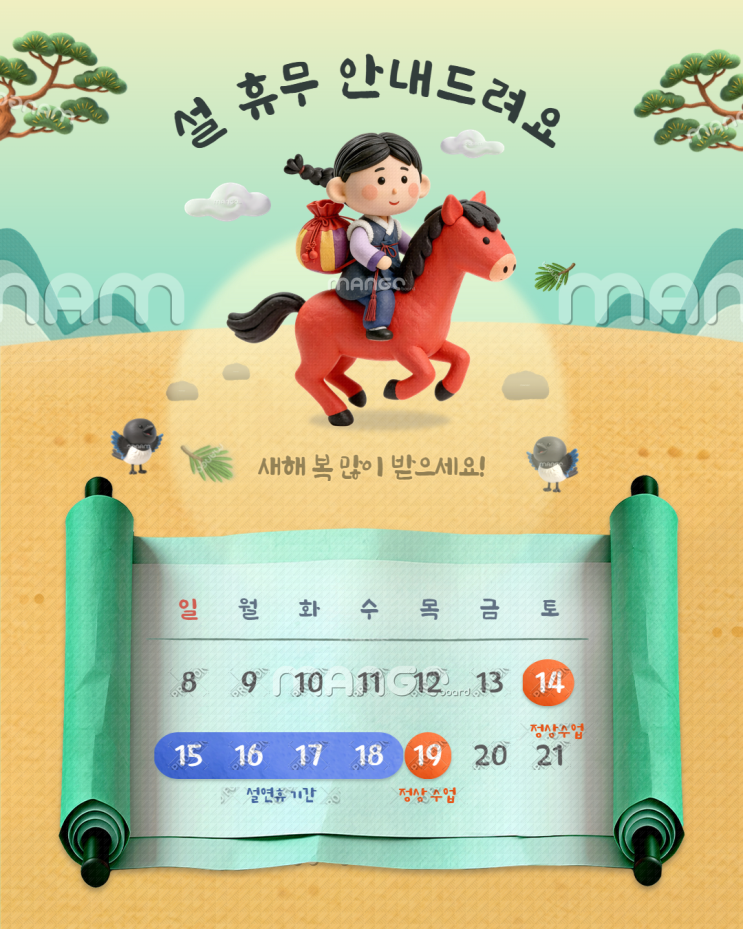 [설 연휴 휴무] 2/15(일) ~ 2/18(수) 4일간 : 새해 복 많이 받으세요