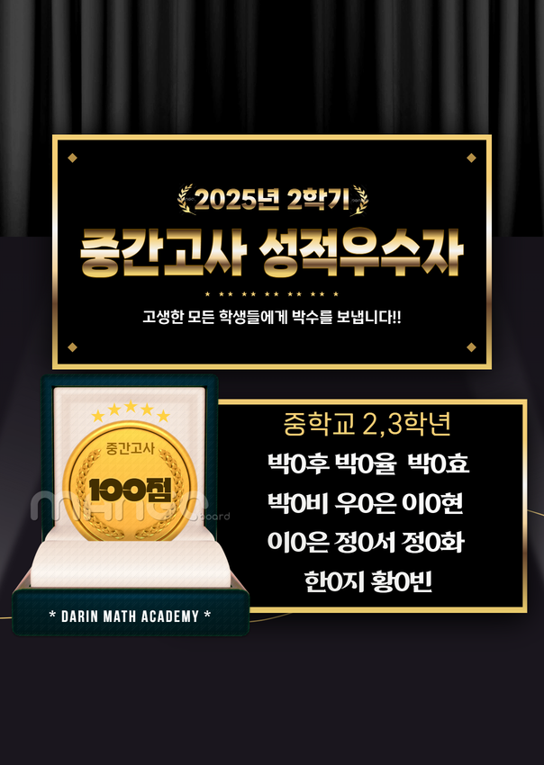 2025년 2학기 중간고사 성적우수자 [중학교 2,3학년]