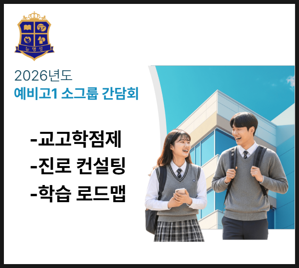 고교학점제 시대, 우리 아이의 진짜 방향을 찾는 시간 뉴명성학원 소그룹 진로·학습 간담회 진행 중! 2025 교육과정의 핵심은 바로 고교학점제입니다. 이제 고등학생들은 대학처럼 원하는 과목을 선택하고, 이수해야 졸업이 가능하며, 그 과정에서 내신 등급의 변동 폭도 예전보다 훨씬 커지고 있습니다. 단순히 “열심히 한다고 해서” 좋은 성적이 보장되지 않는 시대가 온 것입니다. 그래서 뉴명성학원은 학생들이 스스로 진로를 이해하고, 그에 맞는 과목 선택·학습 전략·내신 관리 방식을 잡아갈 수 있도록 소그룹 간담회 프로그램을 운영하고 있습니다. ■ 소그룹 간담회가 특별한 이유 1) 4~6명, 반드시 ‘작게’ 모입니다 소수 인원만 참....... <img src="https://blogthumb.pstatic.net/MjAyNTEyMDVfNDkg/MDAxNzY0OTIyODgzNDQ4.O4dIWgZLnlXD_J1k8pFis669v7FgC348VoJKYcGewjIg.E-zGJhGF4VGJM4YdZMYw5Gw5hFDl20GkvmdMjBCDpt0g.PNG/image.png?type=s3" />