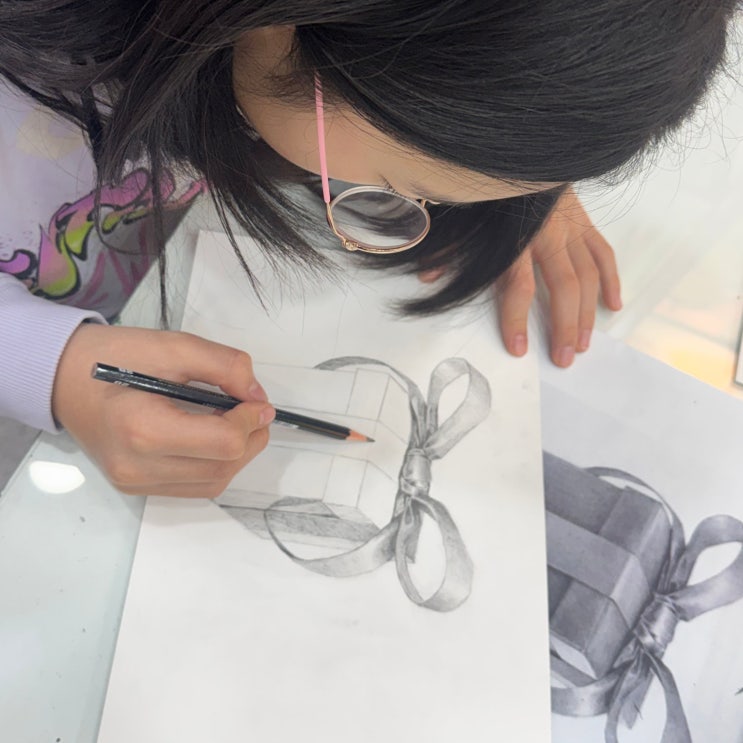 이번 방학, 초등 소묘로 유명한 그리다미술학원의 소묘 집중 특강반을 작품을소개 합니다 방학만큼은 기초를 단단히 다지며, 멋진 액자로 개성있게 완성하는 시간을 가졌습니다 기초 탄탄하게 다지기 ✔ 연필 잡는 법과 선 연습 ✔ 기초 도형 명암 표현 ✔ 빛과 그림자의 이해 ✔ 비례와 구조 잡는 방법 소묘가 처음인 학생도, 기초가 부족했던 학생도 심화로 매년 방학마다 이어서 수업을 하는 학생도 개별 수준에 맞춰 차근차근 시작했습니다. 명암의 이해 관찰력과 표현력 심화 ✔ 정물 소묘 집중 훈련 ✔ 명암 단계 정리 ✔ 화면 구성과 완성도 높이기 ✔ 1:1 피드백을 통한 디테일 보완 아이들은 점점 “그리는 아이”에서 “관찰하는 아이....... <img src="https://blogthumb.pstatic.net/MjAyNjAyMjRfMjQx/MDAxNzcxOTQxNjUxNjIw.st0dEMUTk4w1HYPbA9knq2bhvkP9k_HpkXVKXxbzTK8g.AdRlBIM7I_Y9g5qgVY3TqZRtgQZ8LW_Zs39fvQh9qBgg.JPEG/26024.jpg?type=s3" />