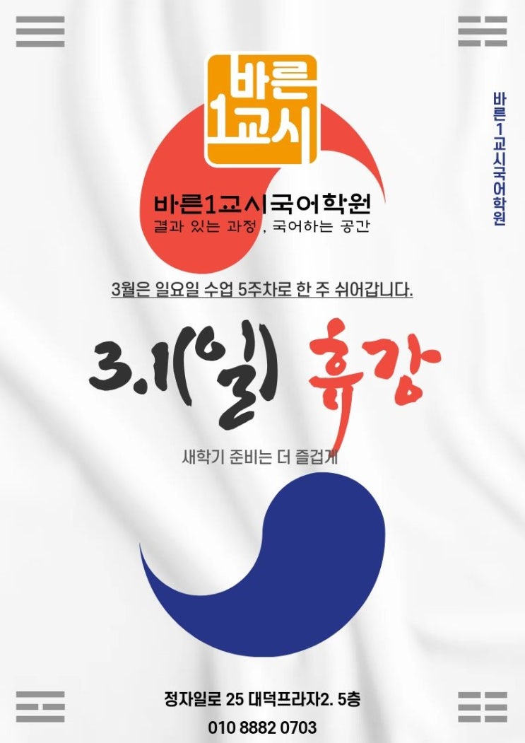3.1일 일요일 휴강입니다.