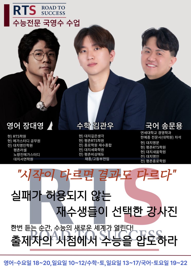 시작이 다르면, 결과도 다릅니다RTS 평촌학원 국어·영어·수학 정시 대비반입시는 언제나 냉정합니다.
