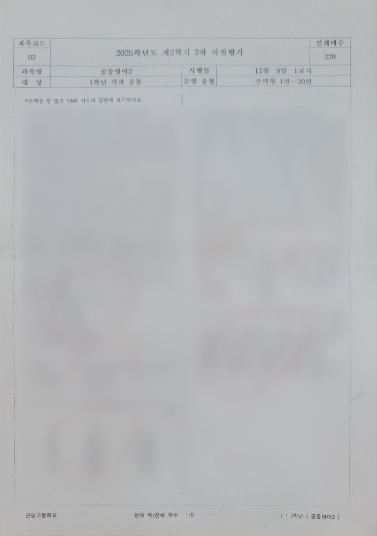 근명고등학교 1학년 2학기 기말 영어 시험분석