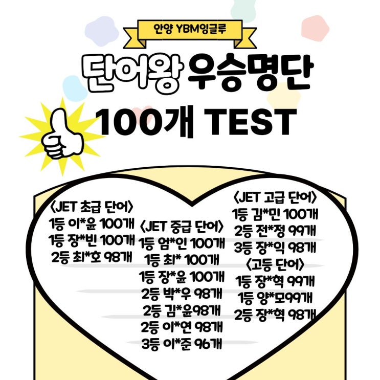 [안양 안일초 YBM 잉글루 영어학원] 1월 단어왕 우승 명단!!